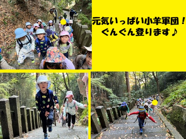 そして小羊さんは、はとさんの時に登って以来の石清水です。去年は表参道も「つかれた。。。」「おべんとうまだなーん」なんて言っていたのが嘘のようにたったったっと階段をかけ登る姿に去年の引率者たちは感動💧