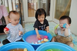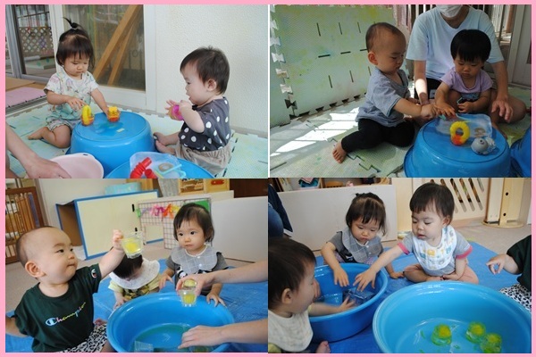 でも遊びたい気持ちはあるようで、お水やおもちゃに興味津々の子どもたちでした。
