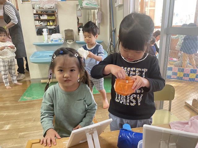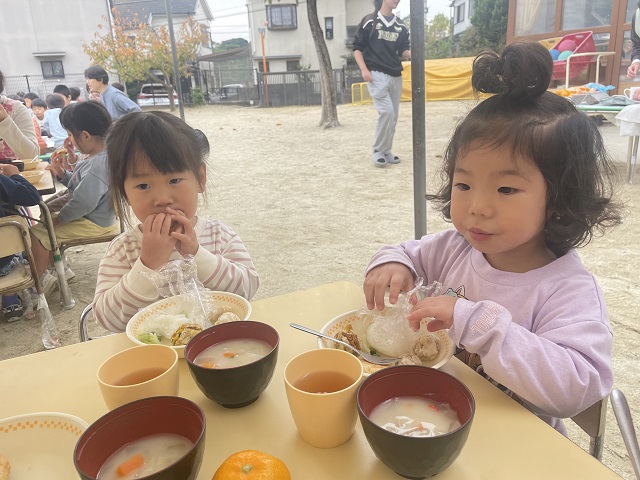 みんな「おいしいねー」とモグモグ食べ、おかわりも楽しみました。