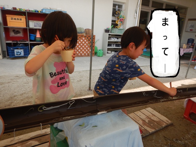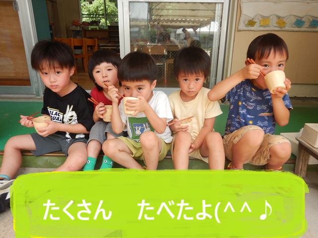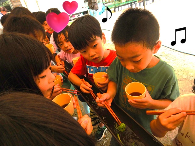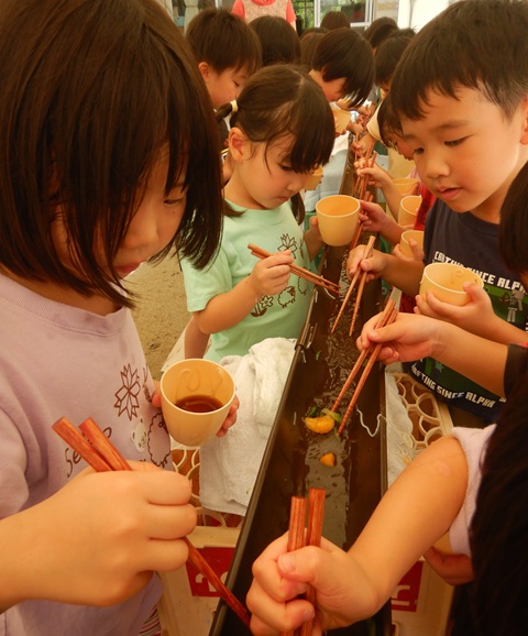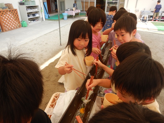 夏の行事として、幼児チームで7月と9月に《流しそうめん》をしました
