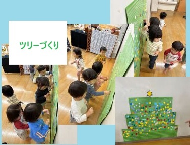 そして、絵の具で色をつけたり、のり貼りをしたりして、クリスマス製作もしました。