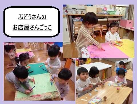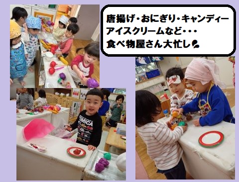 たくさんのお客さんで大忙しのお店屋さん!“いらっしゃいませ”や仕草で接客していましたよ。