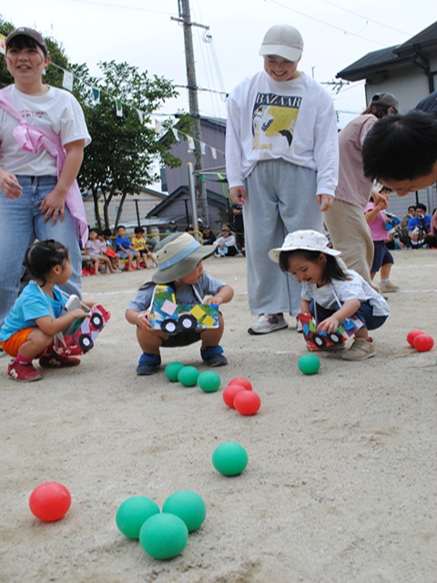 ダンプカーから落ちてきた石ころ(ボール)を頑張って拾って集めるぞ!!