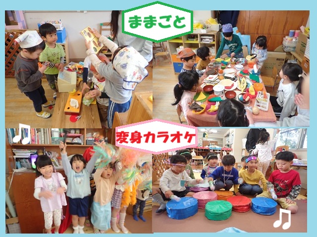のあむぎのお部屋を行き来したり一つのコーナーで遊び続けたり、好きな遊びや気の合う友だちとの遊び、それぞれで楽しんでいました。<img