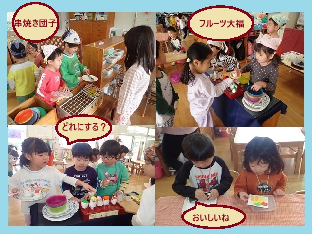 のあむぎさんが各チームでお店屋さんをオープンしてお互いの店も訪れ遊びました。